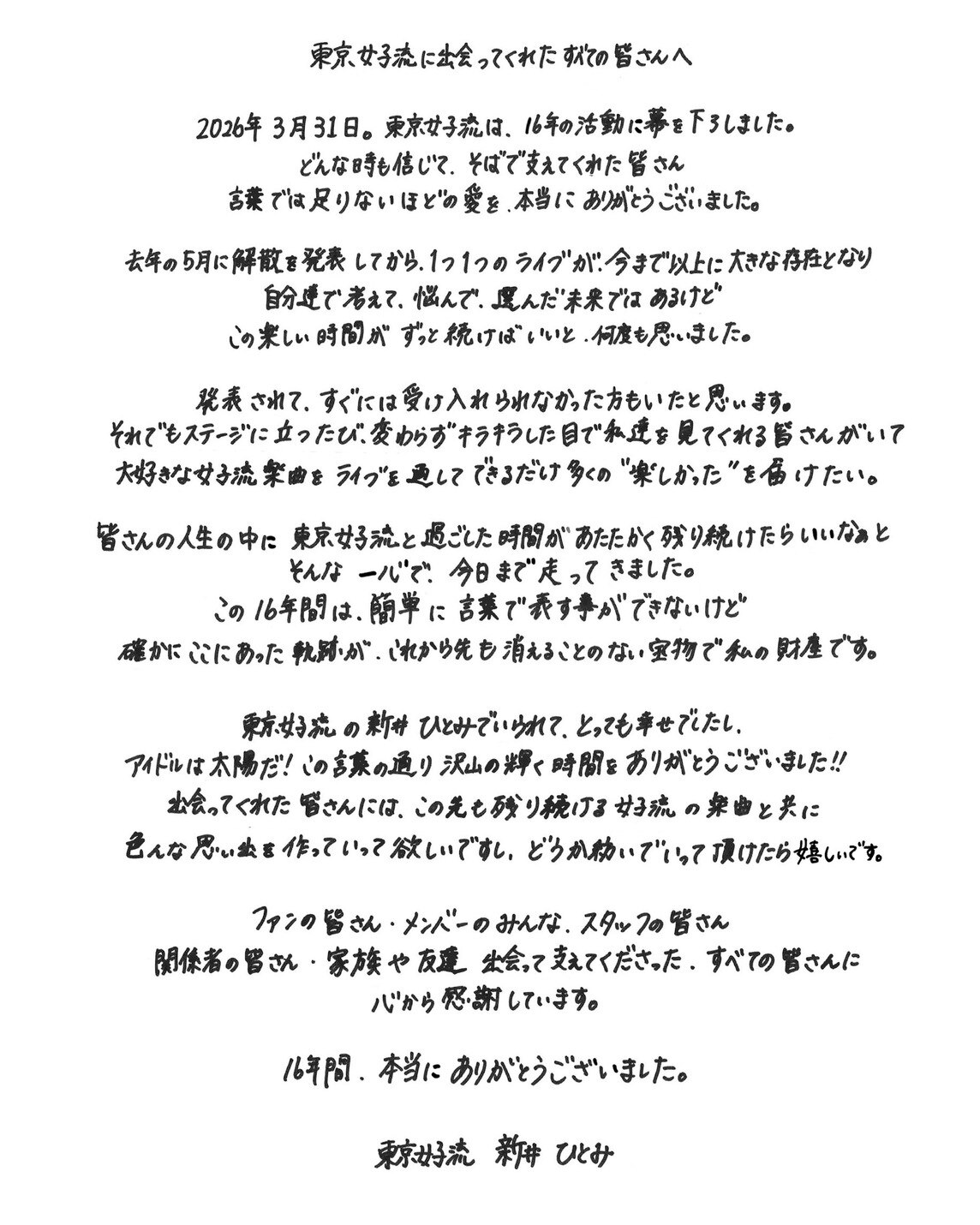 本日2026年3月31日のLAST LIVE~*キセキの物語*~をもって、東京女子流はその歩みを終えました。
